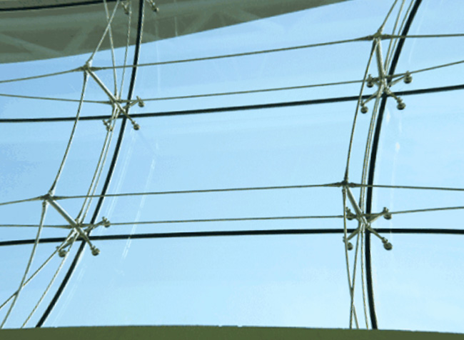玻璃幕牆形式有以下幾種:單元體幕牆(加工、制作成獨立闆塊)、隐框幕牆(現場拼裝)、半隐框幕牆、全玻幕牆、點播幕牆、拉索幕牆等。