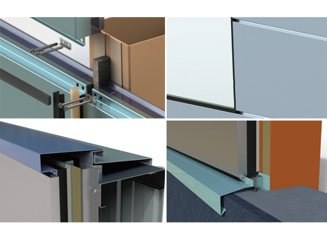 為複合型裝飾闆塊,内外層均為金屬闆裝飾面,内襯防火岩棉,采用雙組份膠粘合後加壓成型,具有較強的整體性。外闆:0.8-1.2mm厚氟碳噴塗鋁闆(Pvdf塗層)