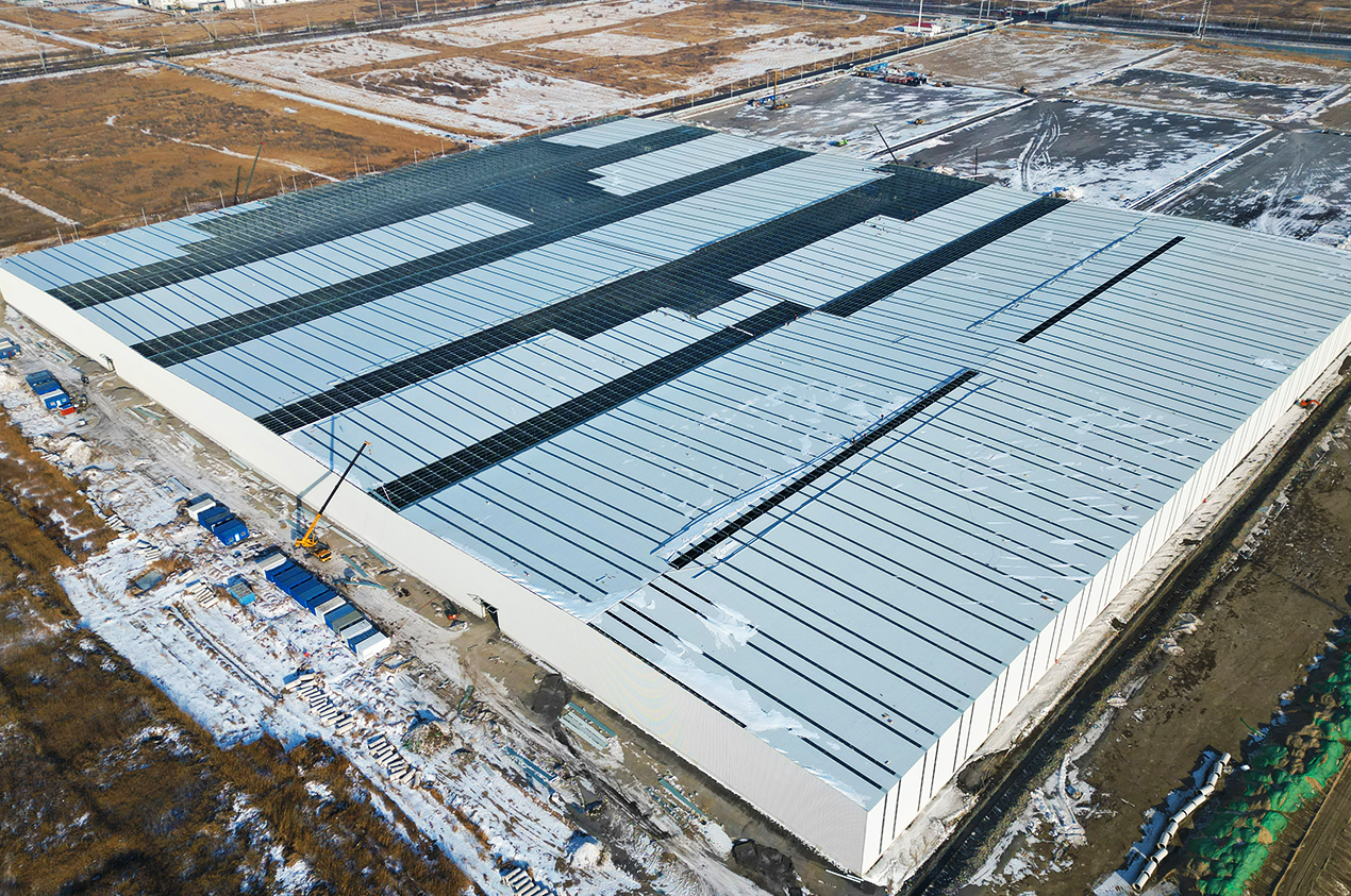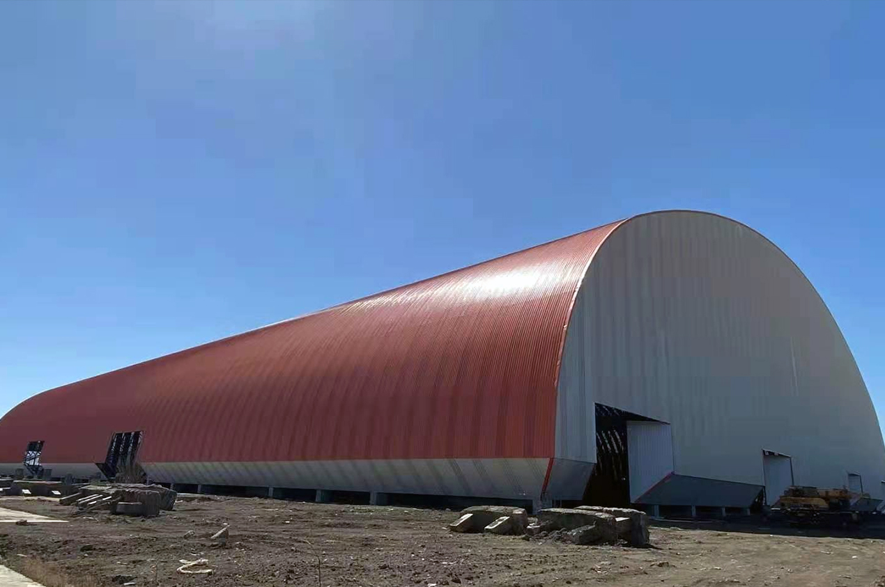 工程内容及規模: 二連浩通封閉煤棚,跨度100米,長度450米,采用螺栓球網架,屋面及牆面采用C型鋼檩條鍊接,屋面及牆面840版型進行封閉,實現了封閉煤棚。總體用鋼量2500噸。