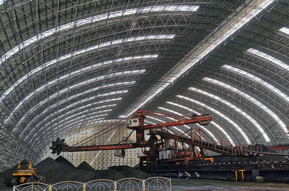 工程内容及規模: 定州旭陽焦化封閉煤棚項目,螺栓球網架,跨度120米,長度400米,高度50米,屋頂采用通風器氣樓。
