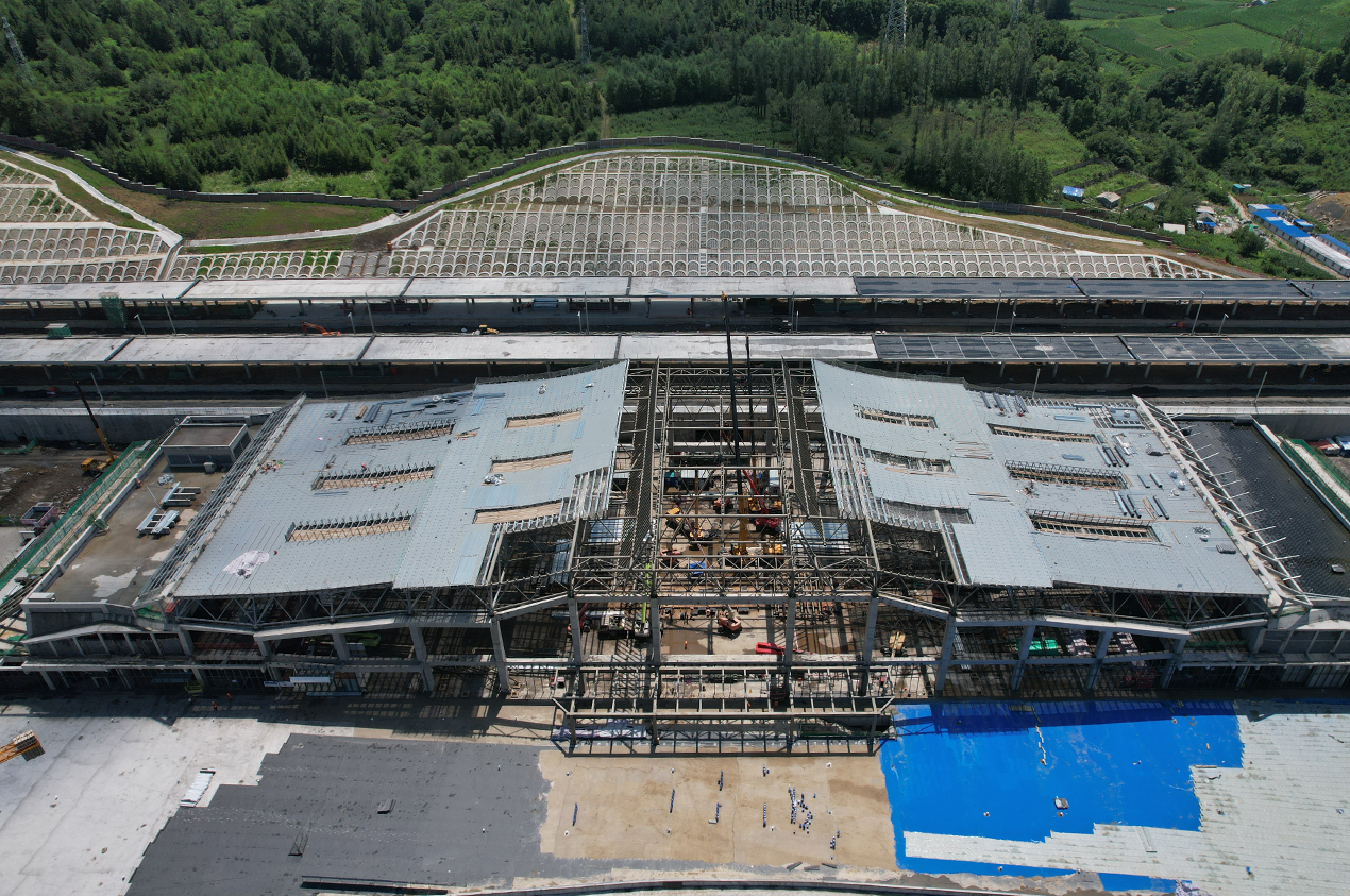 工程内容及規模: 此項目是沈陽市至白河高速高鐵站項目,靠近長白山,白山東站高鐵站采用管桁架結構形式,用鋼量1600噸,現場拼焊及二次倒運及吊裝,考慮距離遠事宜,工期緊張,現場制作,圓管桁架大管徑500mm。
