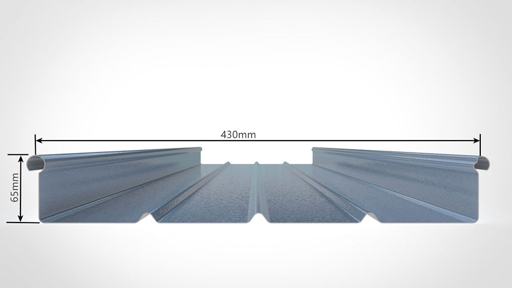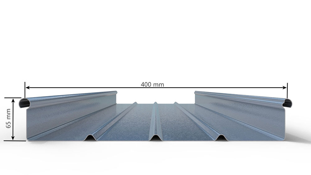 先進的直立鎖邊連接方式,無螺釘穿透,65mm肋高,确保極其優良的密水性能及防雨雪滲漏能力;